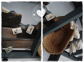 De twee onderste foto`s zijn gemaakt van het plafon, ja echt, als je naar het plafon keek zag je eerst houten balken en daarop was ook gestyled hoor, een echt brocante-styliste is hier bezig geweest.
